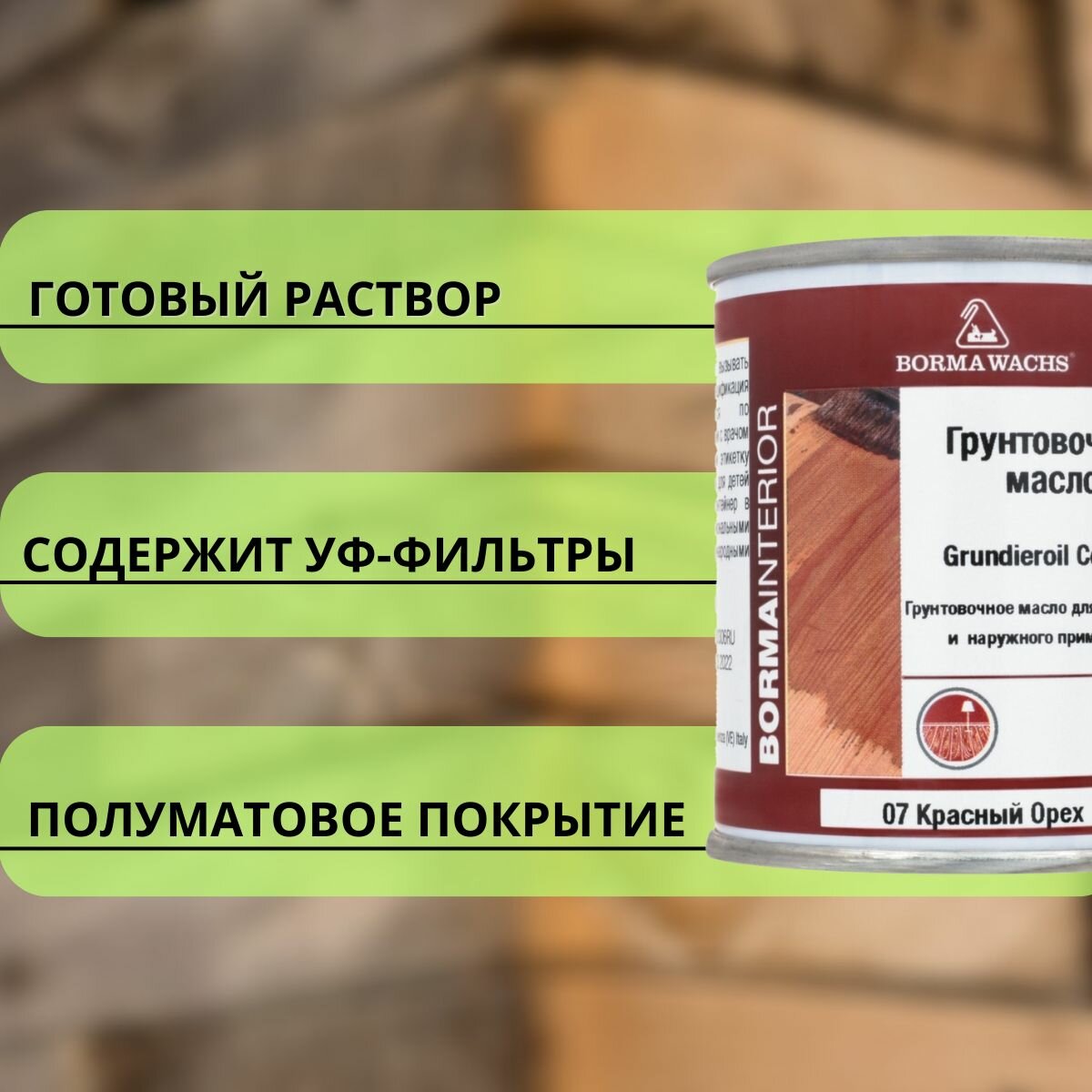 Масло грунтовочное BORMA GRUNDIEROIL для обработки древесины для наружных и внутренних работ 1л 07 Красный орех R3910-7 декоративная пропитка / морилка 3 500 ₽