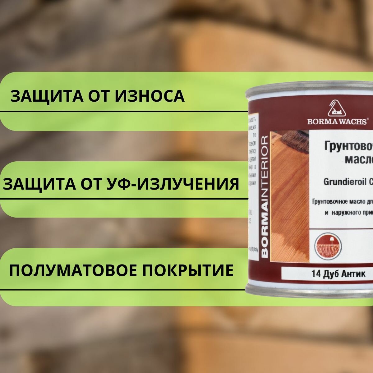 Масло грунтовочное BORMA GRUNDIEROIL для обработки древесины для наружных и внутренних работ 1л 14 Дуб антик R3910-14 декоративная пропитка / морилка 3 500 ₽