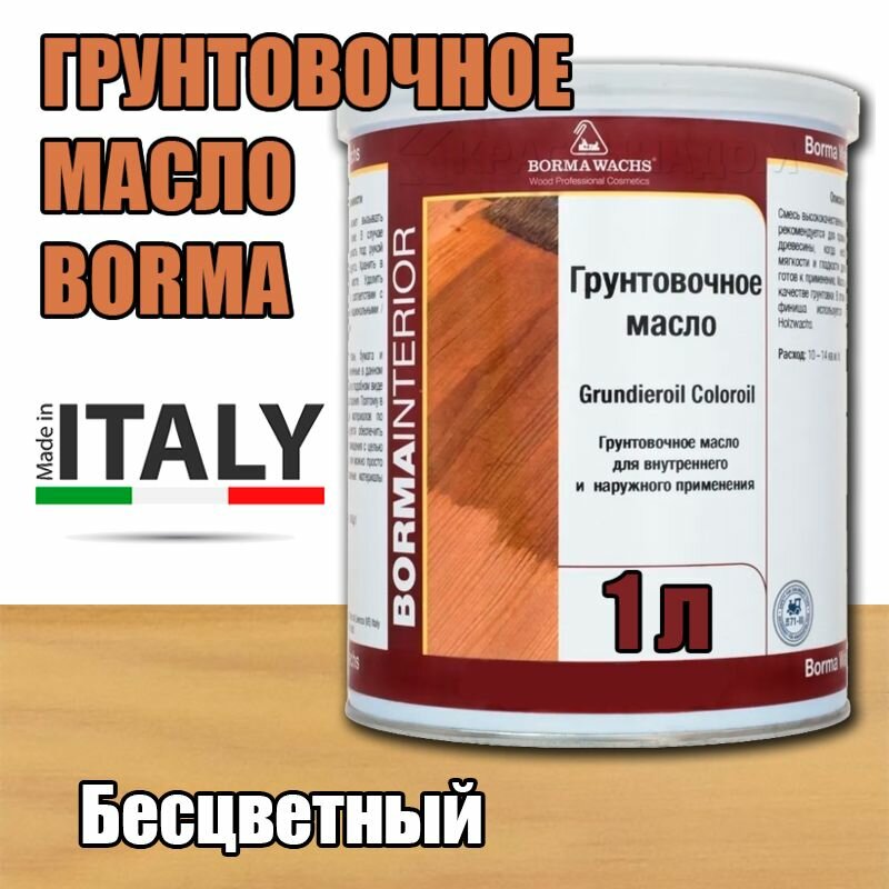 Масло грунтовочное BORMA GRUNDIEROIL для обработки древесины для наружных и внутренних работ 1л 17 Тик 3910te декоративная пропитка / морилка 3 500 ₽