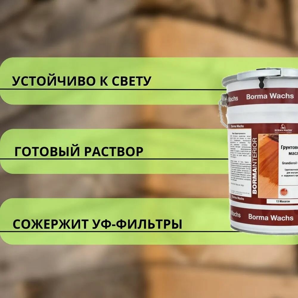 Масло грунтовочное BORMA GRUNDIEROIL для обработки древесины для наружных и внутренних работ 5л 13 Махагон R3950-13 декоративная пропитка / морилка 15 500 ₽