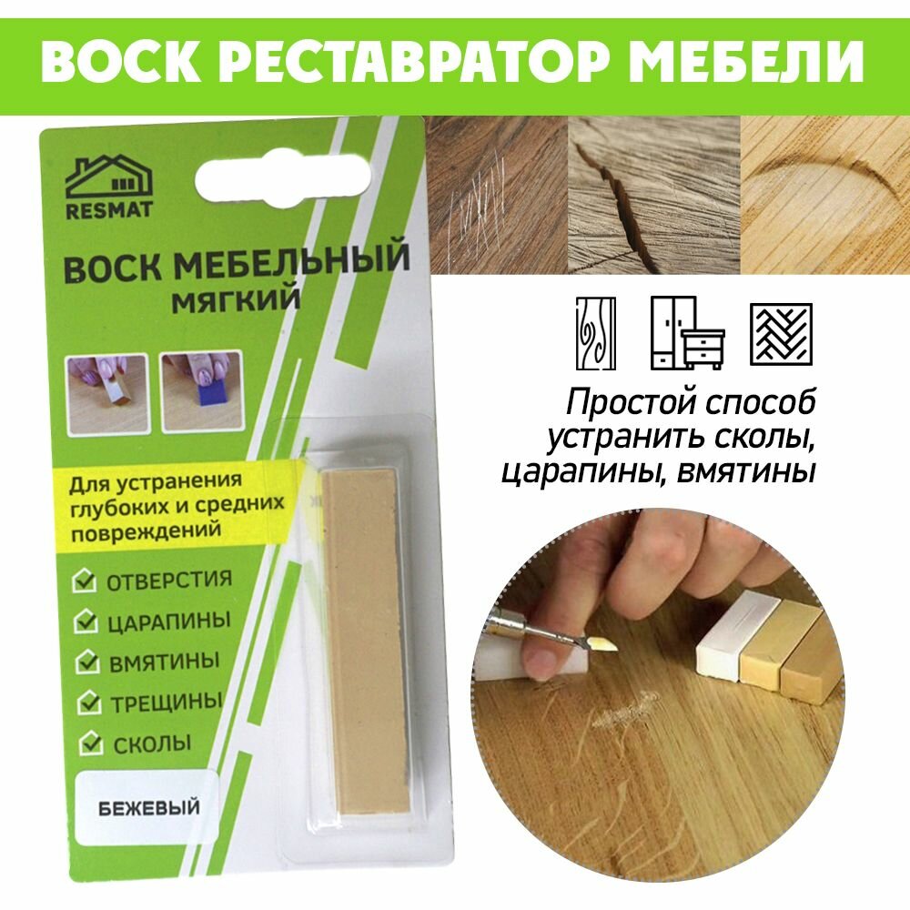 Воск мягкий для реставрации мебели и напольного покрытия/ 1 шт/ цвет - бежевый информация: