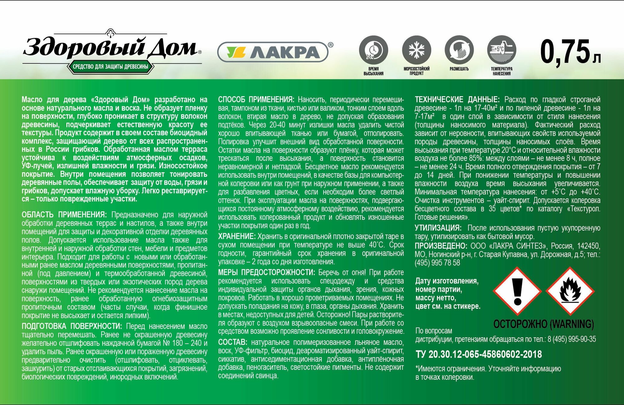Масло для Защиты Террас и Деревянных Полов Здоровый Дом 0.75л Венге для Внутренних и Наружных Работ. информация: