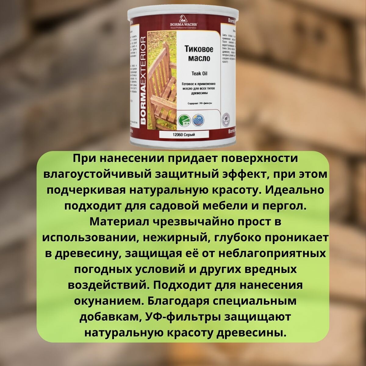 Масло тиковое 1л 1011 (Серый) Borma Teak Oil EN0361-DS1011 информация: