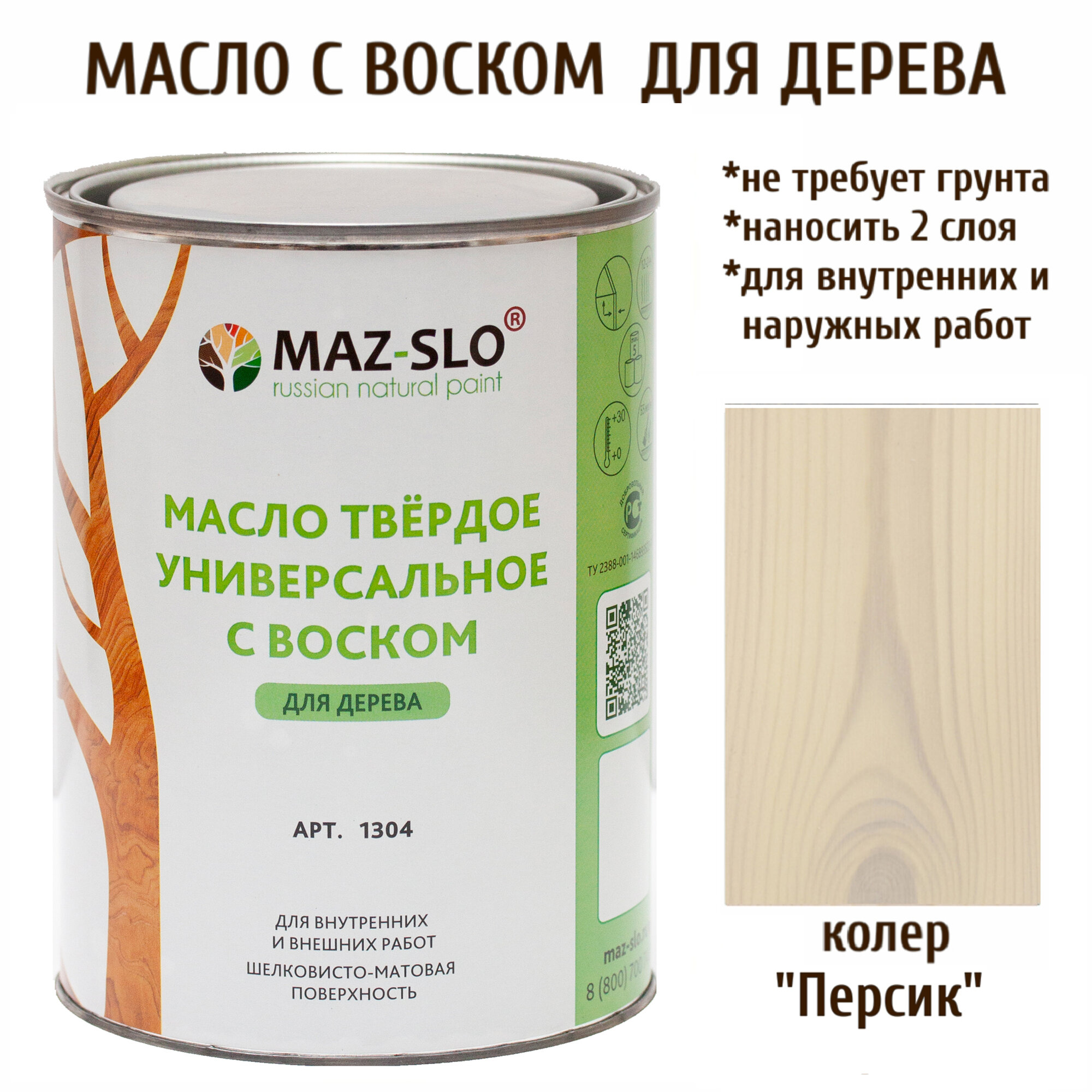 Масло твердое универсальное с воском Maz-slo цвет Персик информация: