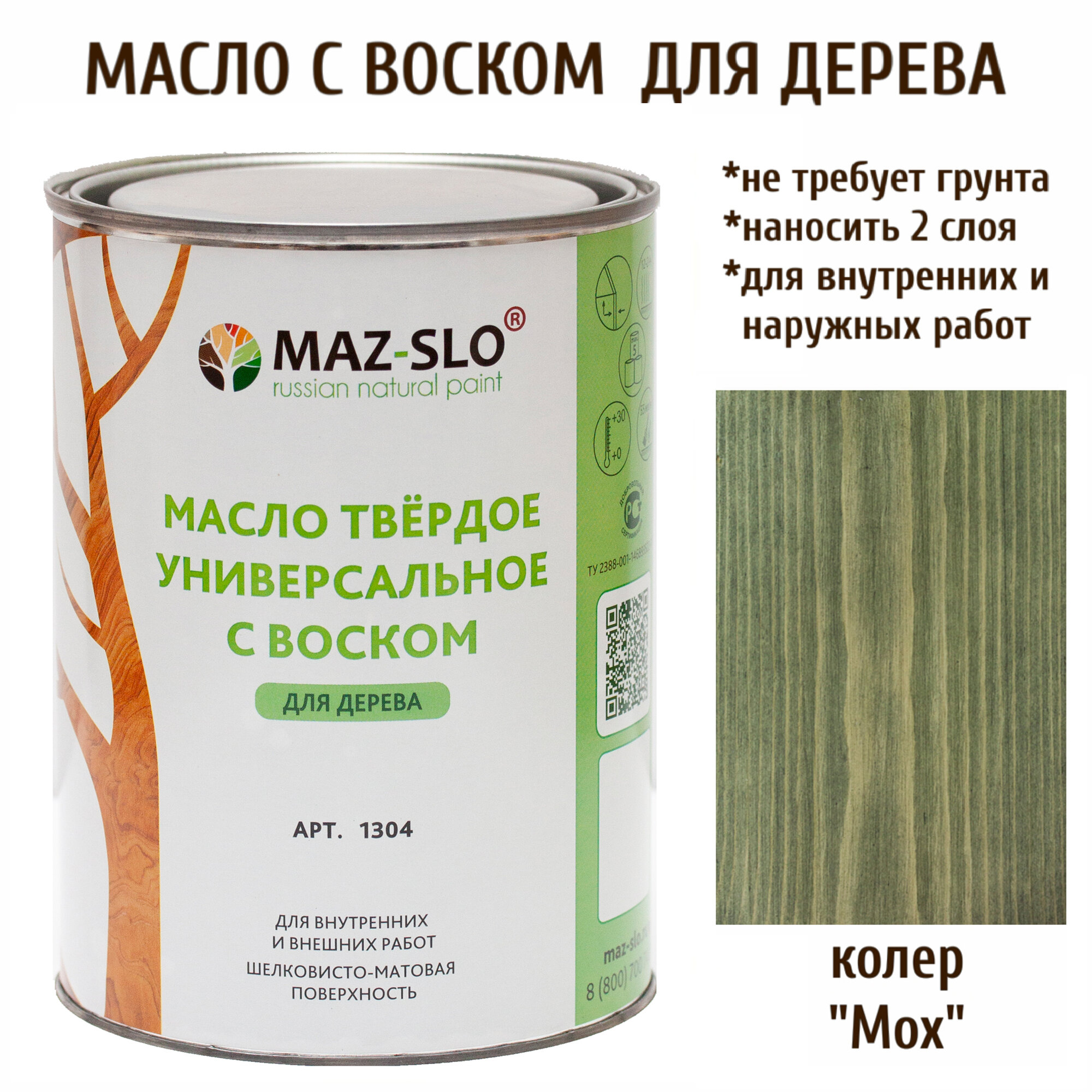 Масло твердое универсальное с воском Maz-slo цвет Мох информация: