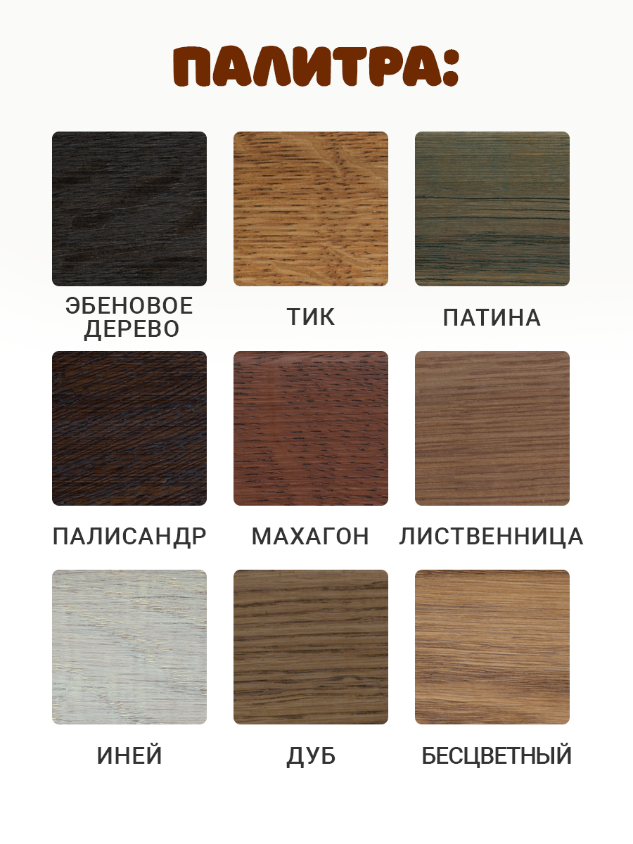 | Цвет товара | белый, бесцветный, дуб, иней, коричневый, лиственница, махагон, палисандр, патина, тик, эбеновое дерево |