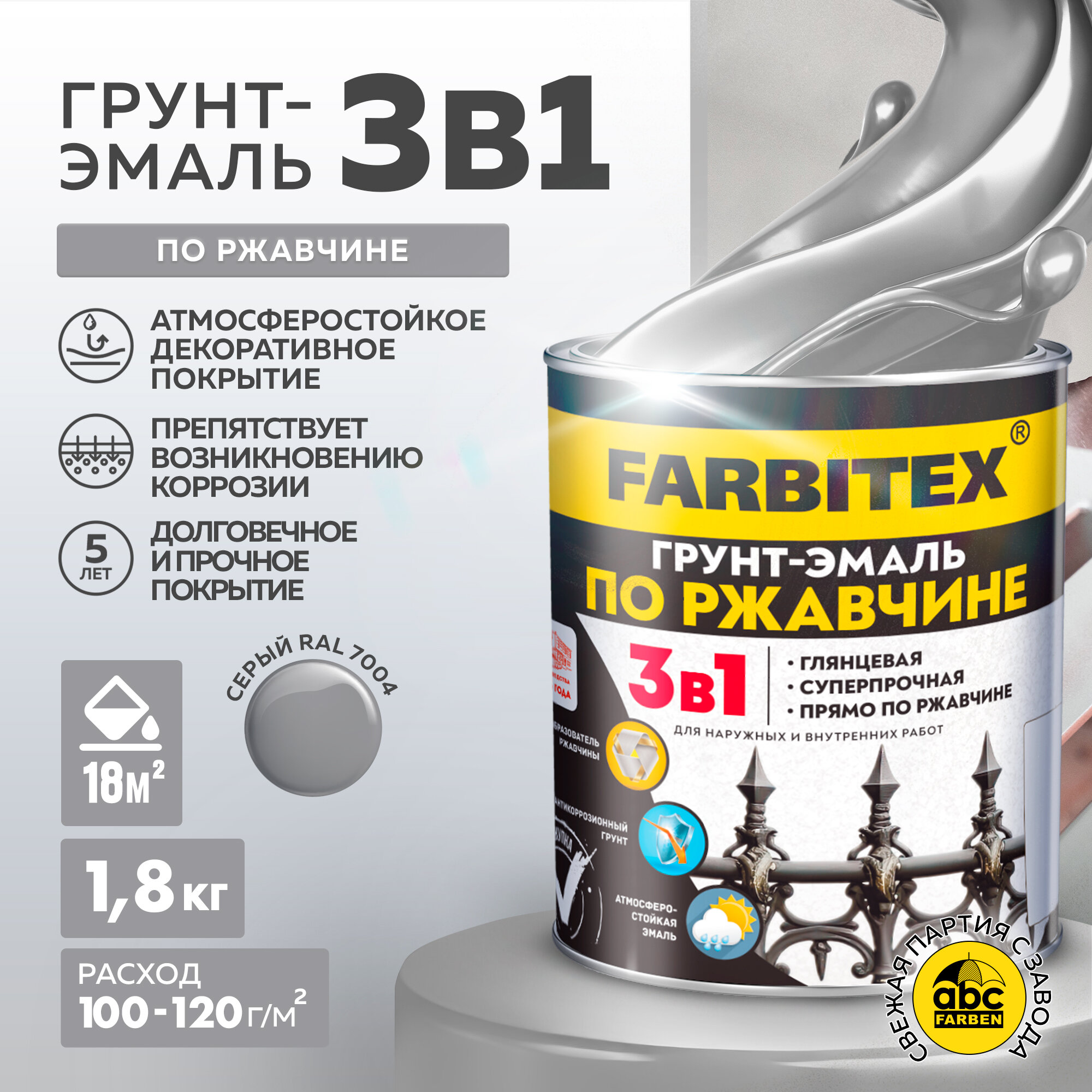 10 цен на Грунт-эмаль по ржавчине 3 в 1 FARBITEX Светло-серый 7004 1,8 кг