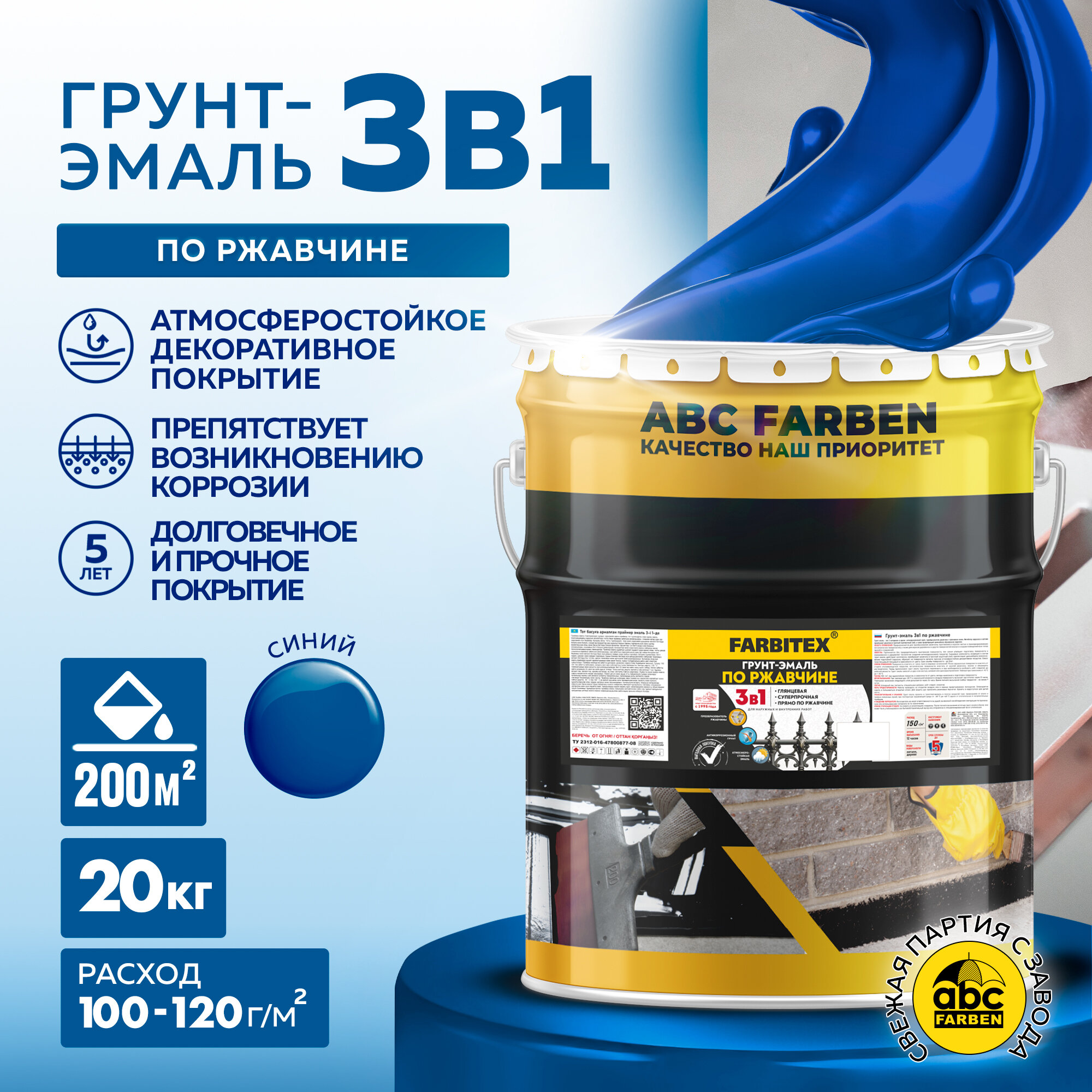 Грунт-эмаль по ржавчине 3 в 1 FARBITEX Синий 20 кг информация: