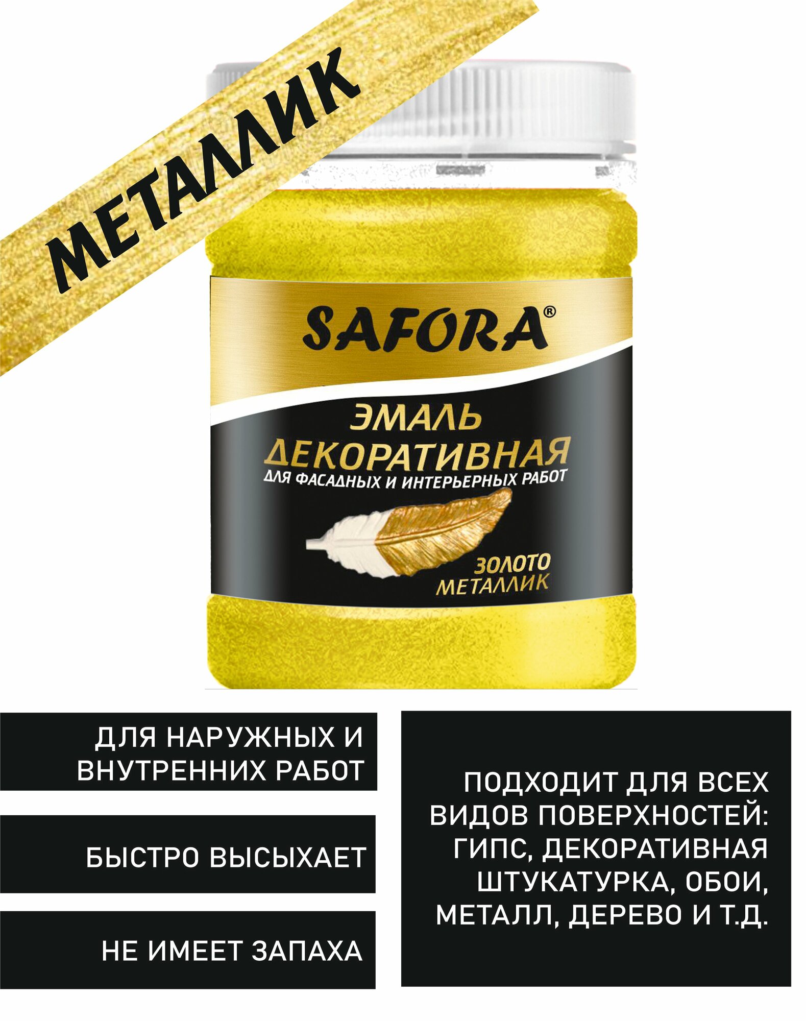 Краска декоративная акриловая металлизированная, эмаль золото металлик 250г информация: