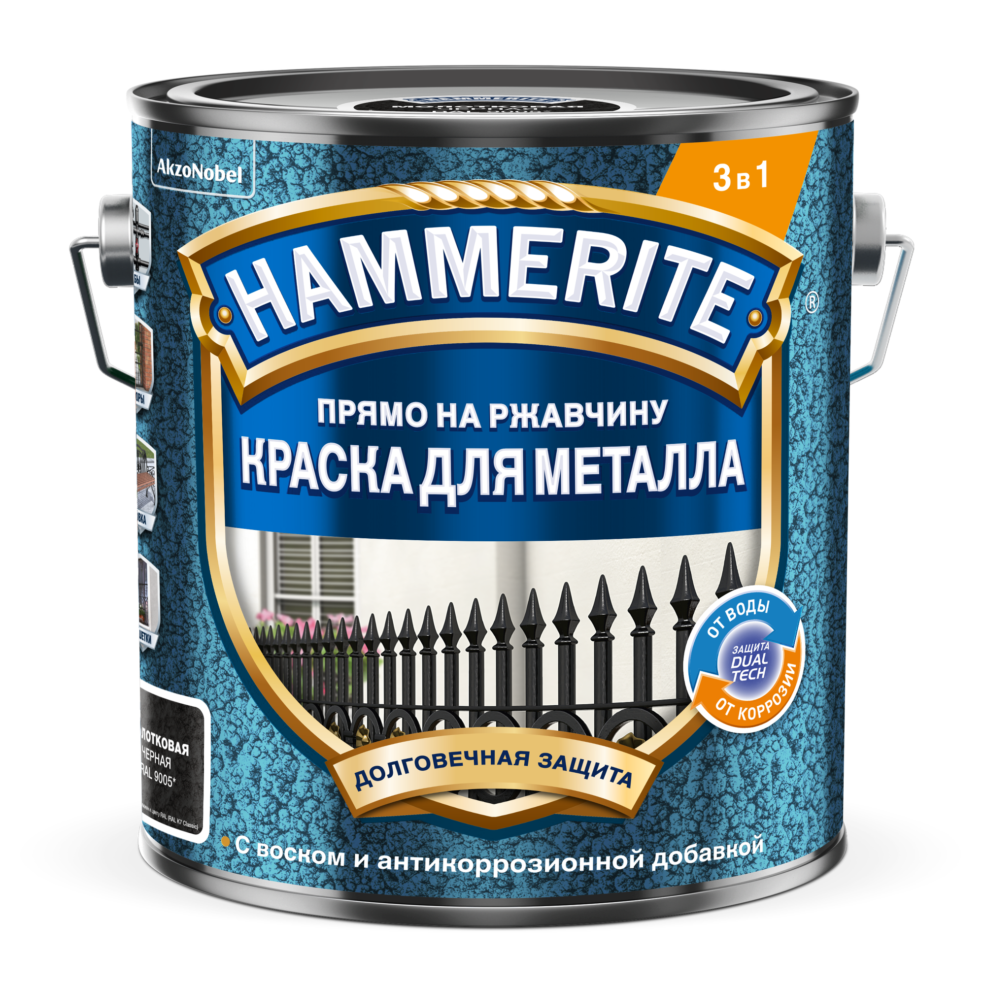 | Дополнительная информация | Краска для металла молотковая прямо по ржавчине с формулой 3 в 1 (грунт, ингибитор коррозии, финишное покрытие) легко и быстро защищает металл от ржавчины, придает красивый внешний вид поверхности. Благодаря технологии DUAL TECH с добавлением воска обеспечивает двойную защиту металлической поверхности от воды и коррозии. - Уникальная формула краски 3 в 1. Прямо на ржавчину. - Долговечная защита металла - Образует атмосферостойкое покрытие с грязе- и водоотталкивающими свойствами - Технология Dual Tech — только в Hammerite - Обладает отличной укрывистостью и адгезией (способность к прочному сцеплению) к ржавой поверхности |