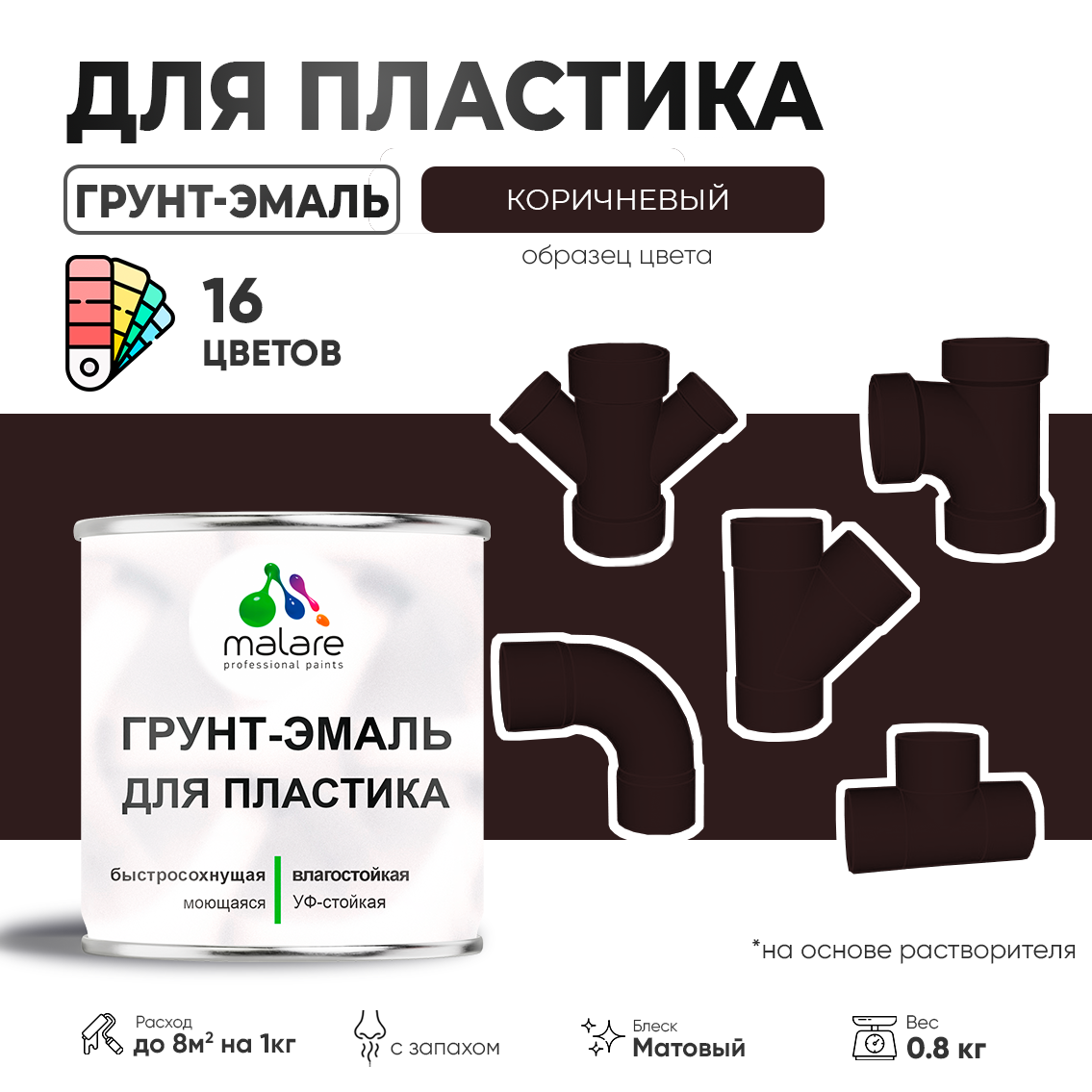 Грунт-Эмаль, Краска Malare 3 в 1 для пластика, окон и подоконников, сайдинга, быстросохнущая, матовый, коричневый, 0.8 кг. информация: