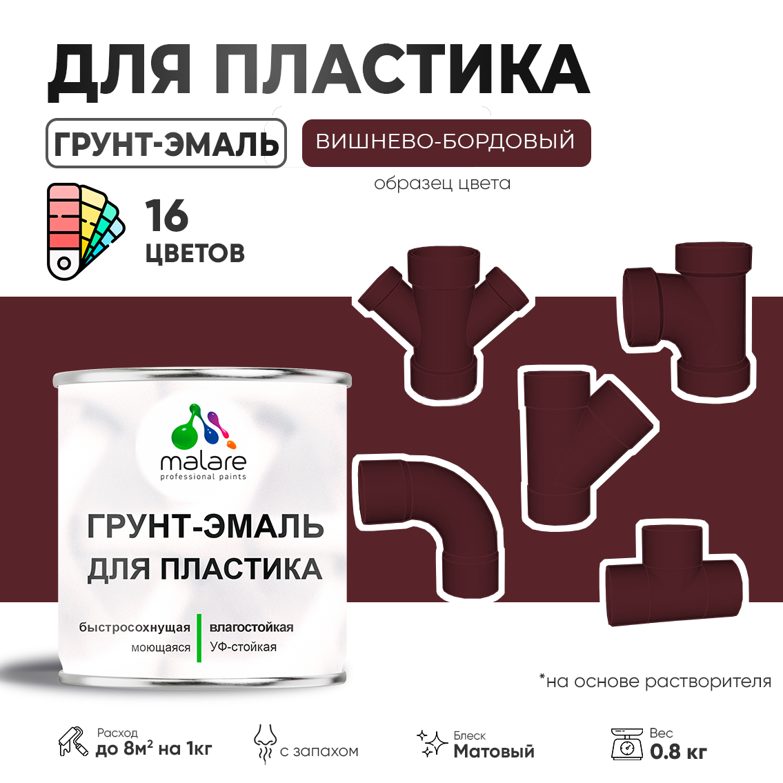 Грунт-Эмаль, Краска Malare 3 в 1 для пластика, окон и подоконников, сайдинга, быстросохнущая, матовый, вишнево-бордовый, 0.8 кг. информация: