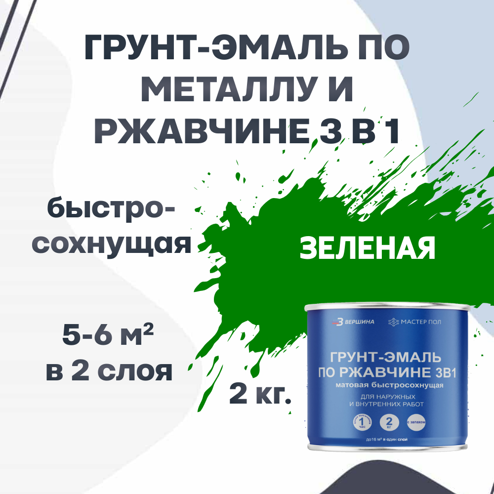 Грунт-эмаль по металлу и ржавчине краска 3 в 1 антикоррозийная краска зеленая (2 кг.) информация: