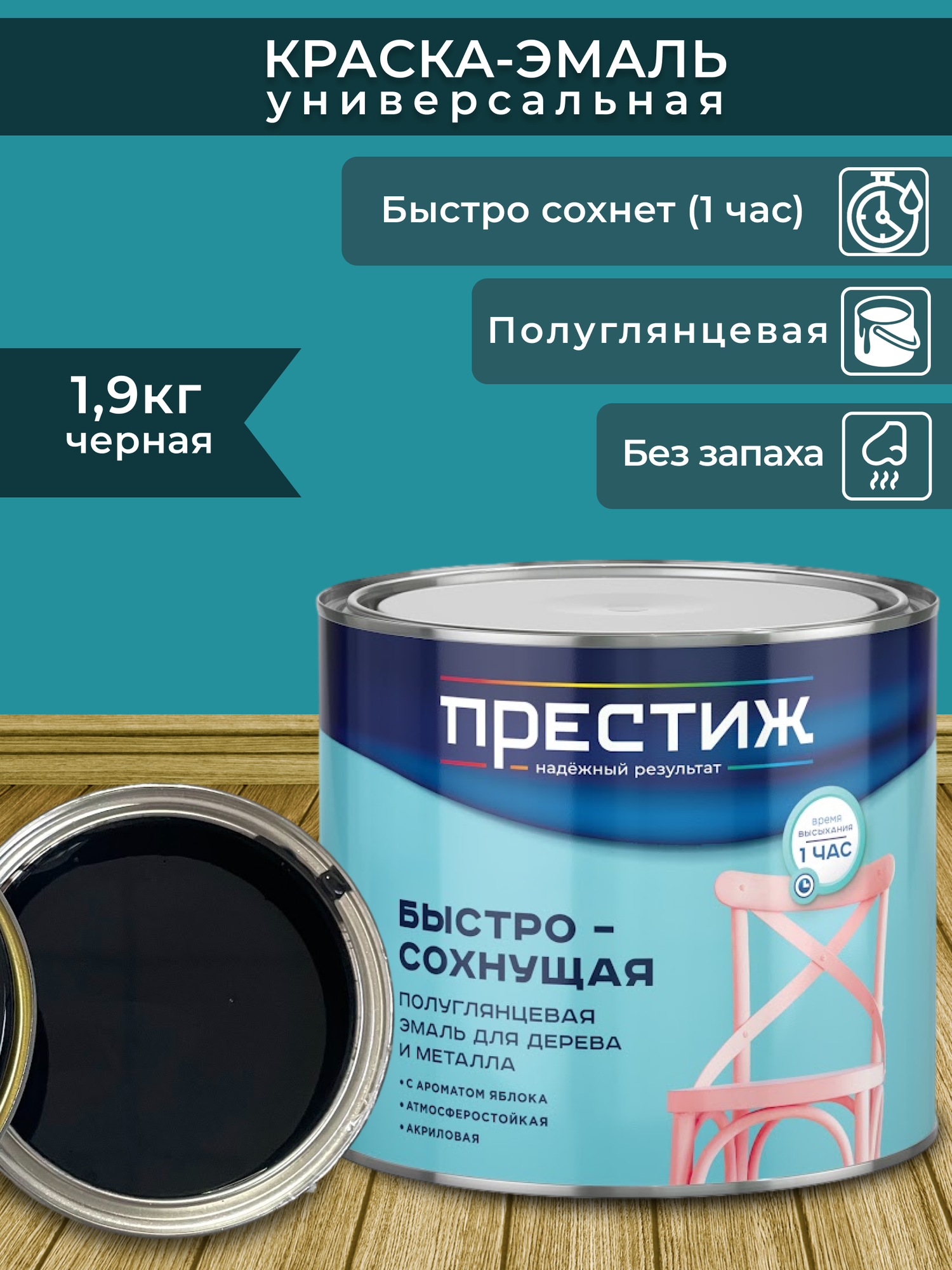 Эмаль акриловая Престиж, полуглянцевая, черная, 1,9 кг информация: