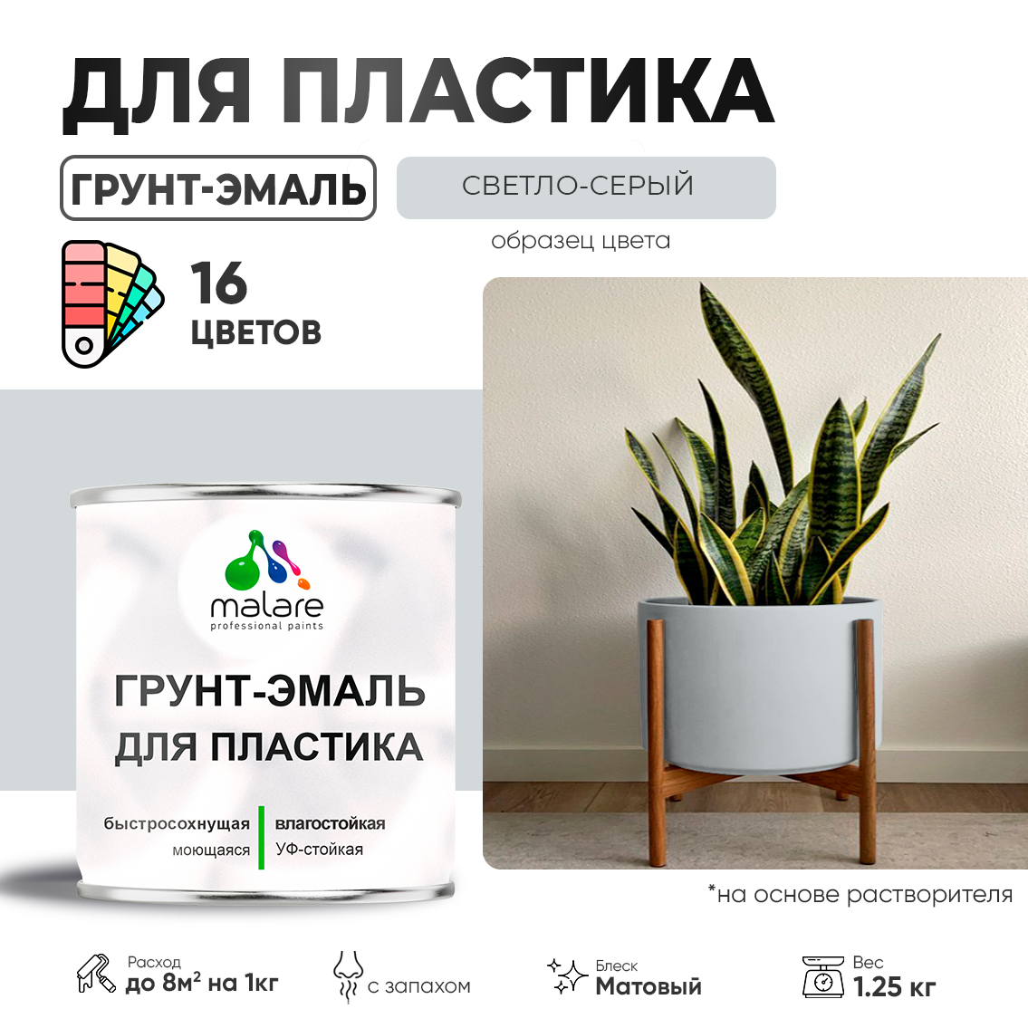 Грунт-Эмаль, Краска Malare 3 в 1 для пластика, окон и подоконников, сайдинга, быстросохнущая, матовый, светло-серый, 1,25 кг. информация: