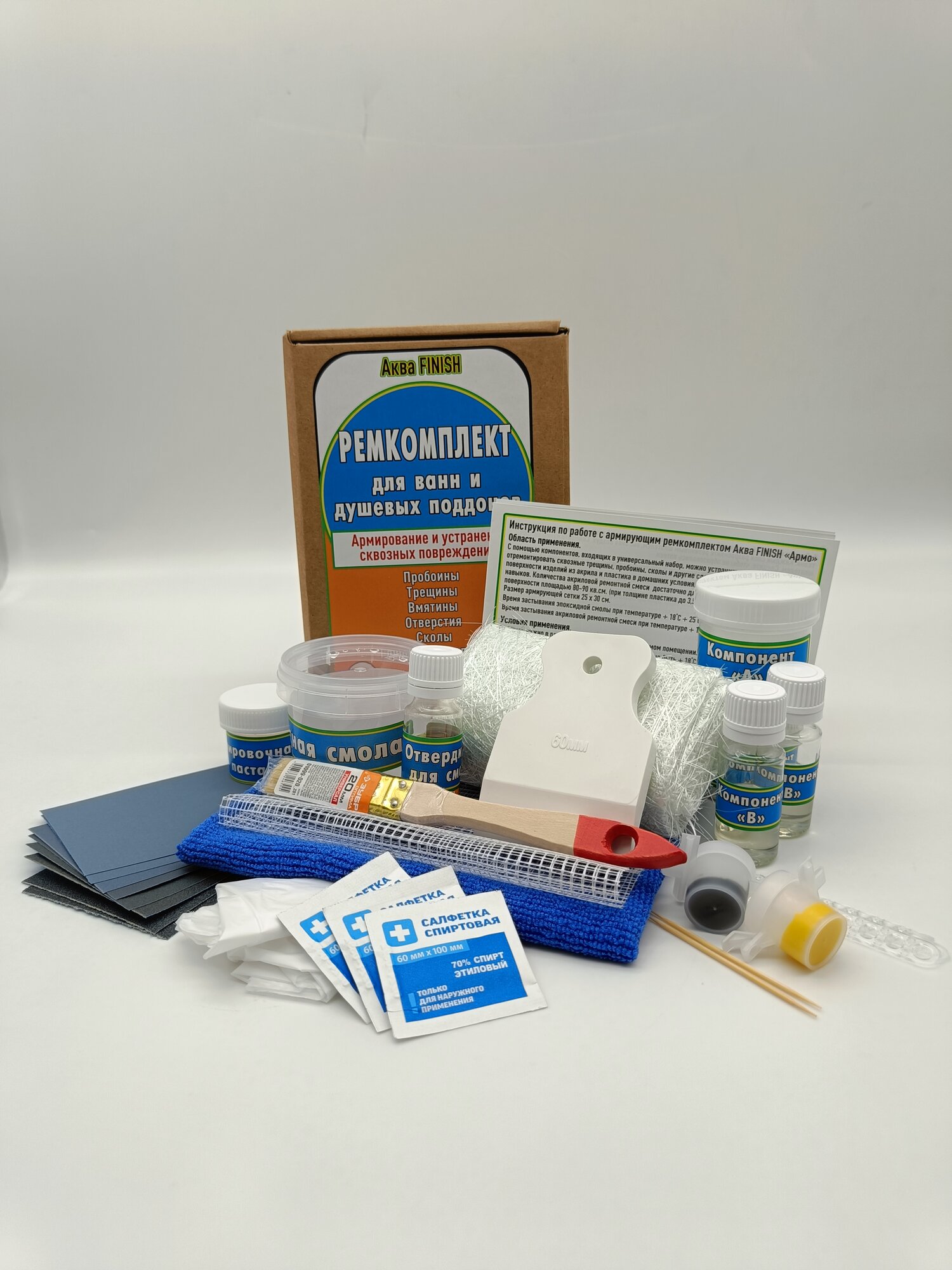Универсальный армирующий ремкомплект для акриловых ванн и душевых поддонов. Набор Аква FINISH "ARMO" информация: