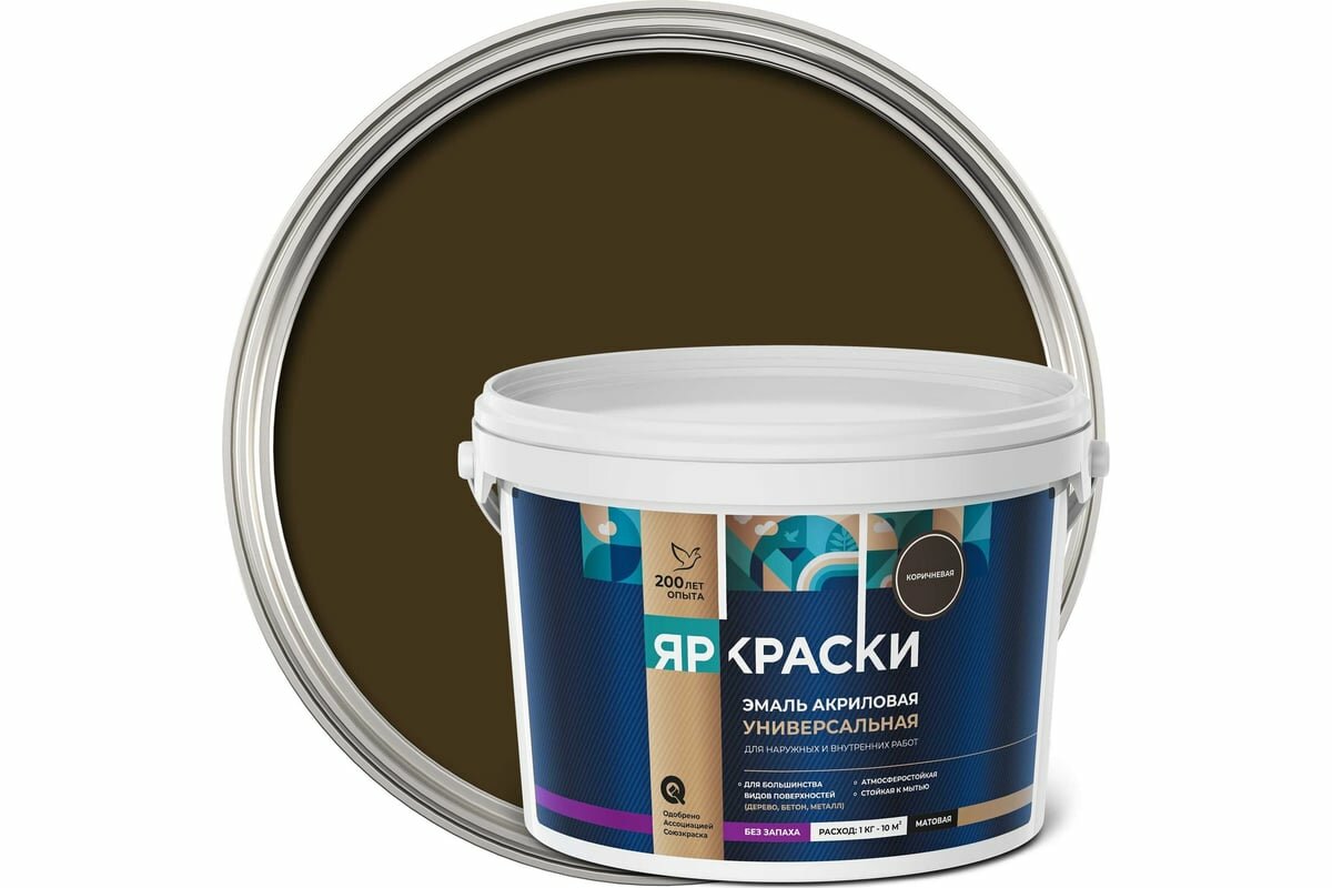 Универсальная акриловая эмаль ярославские краски (коричневая; матовая; 0.9 кг) О05195