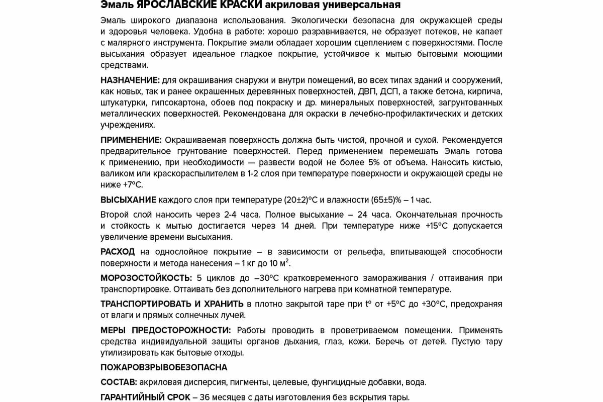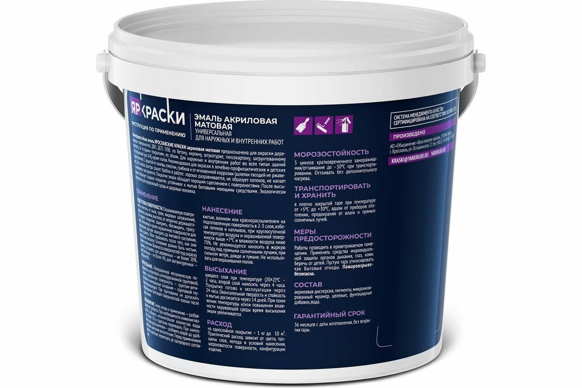 Универсальная акриловая эмаль ярославские краски О05196 информация: