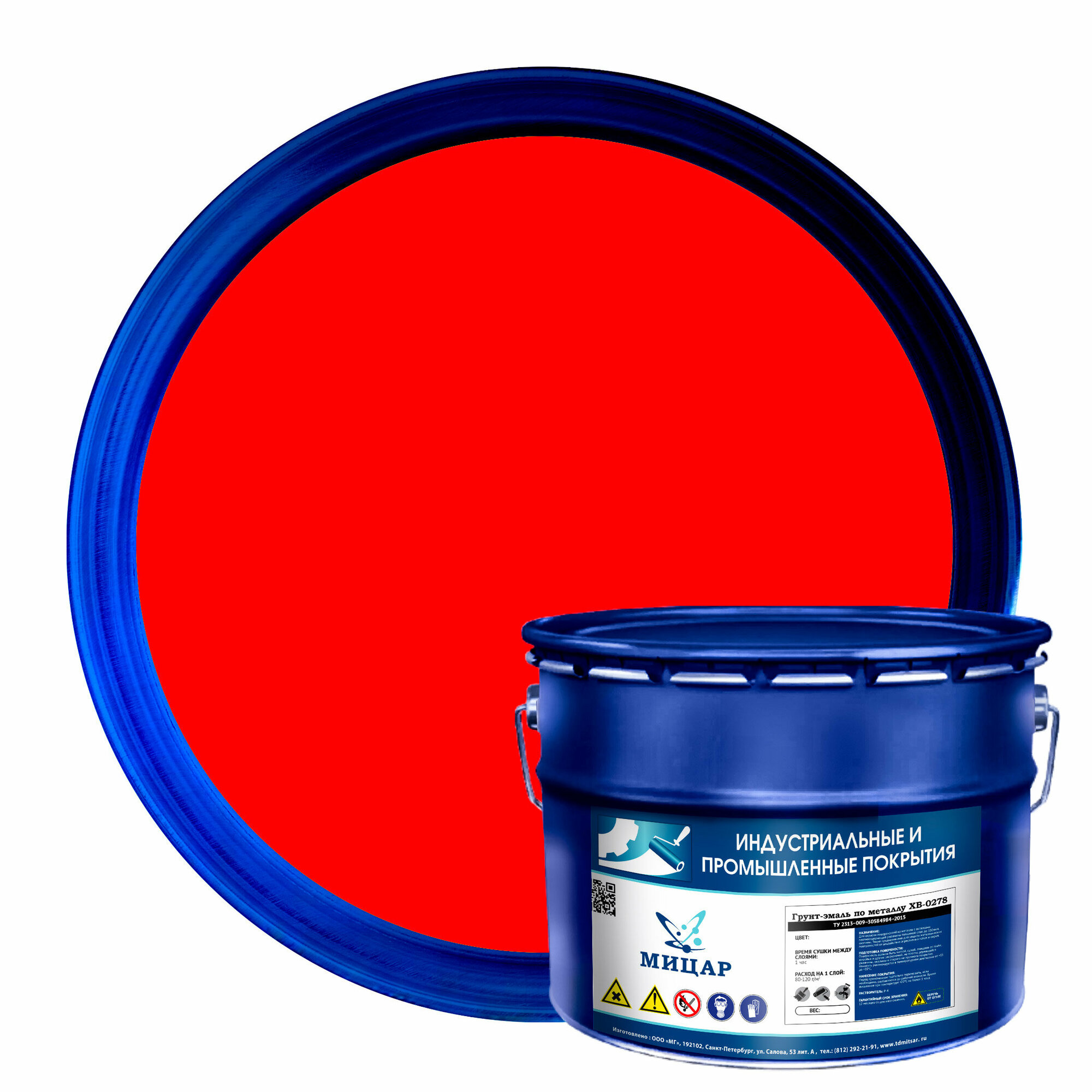 Грунт-эмаль по металлу и ржавчине ХВ-0278, Мицар, 10 кг, до 40°, матовая, красный информация: