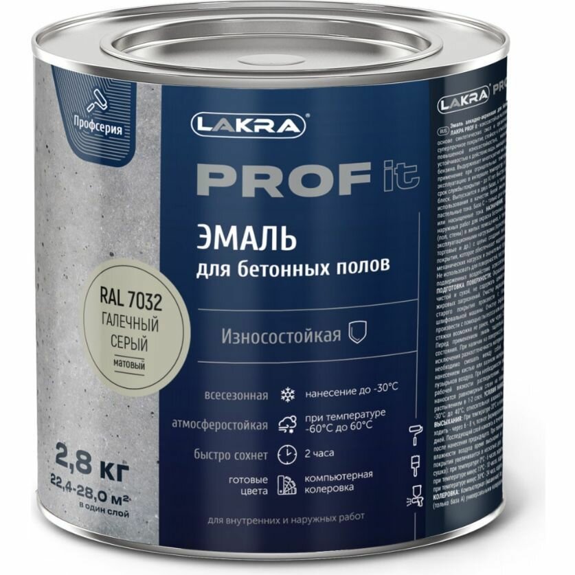 Эмаль для бетонных полов быстросохнущая Лакра PROF IT Галечный серый, RAL 7032 2,8 кг информация: