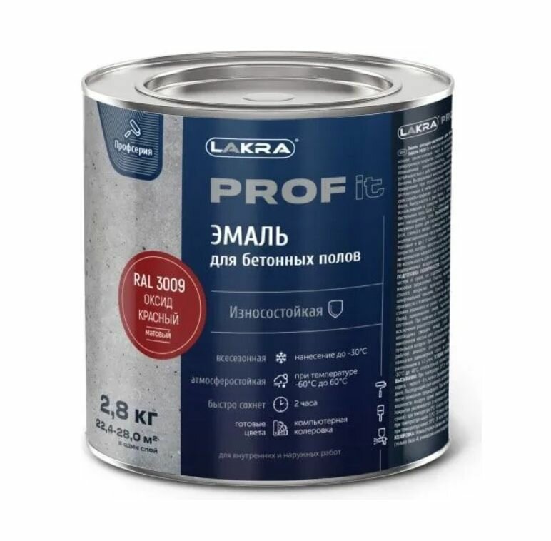 Эмаль для бетонных полов быстросохнущая Лакра PROF IT Оксид красный, RAL 3009 2,8 кг информация: