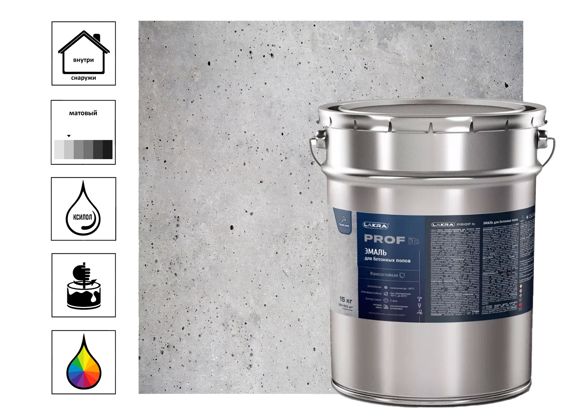 Эмаль Лакра PROF IT для бетонных полов быстросохнущая база А, RAL 9003 15кг информация: