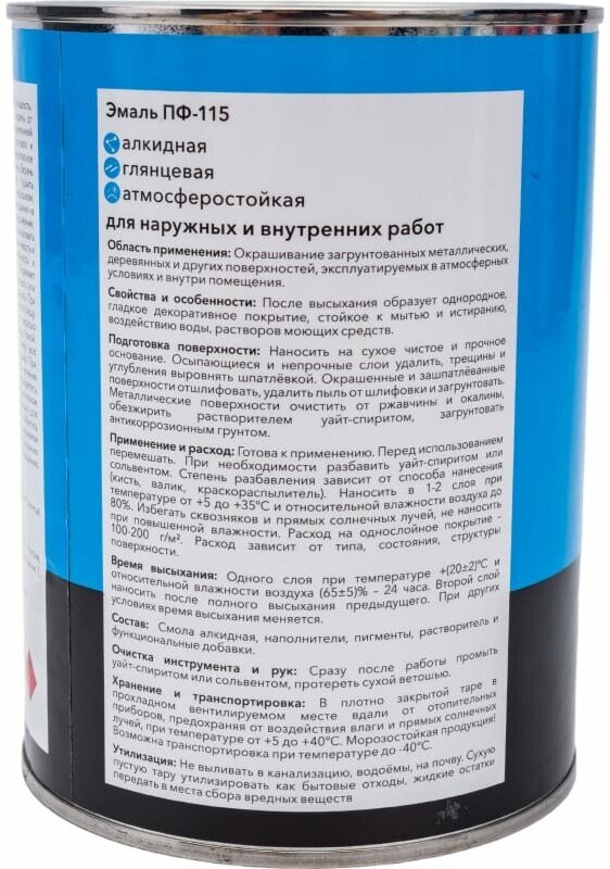 Эмаль ПФ-115 для металла и дерева H, алкидная, 0,8 кг, белая информация: