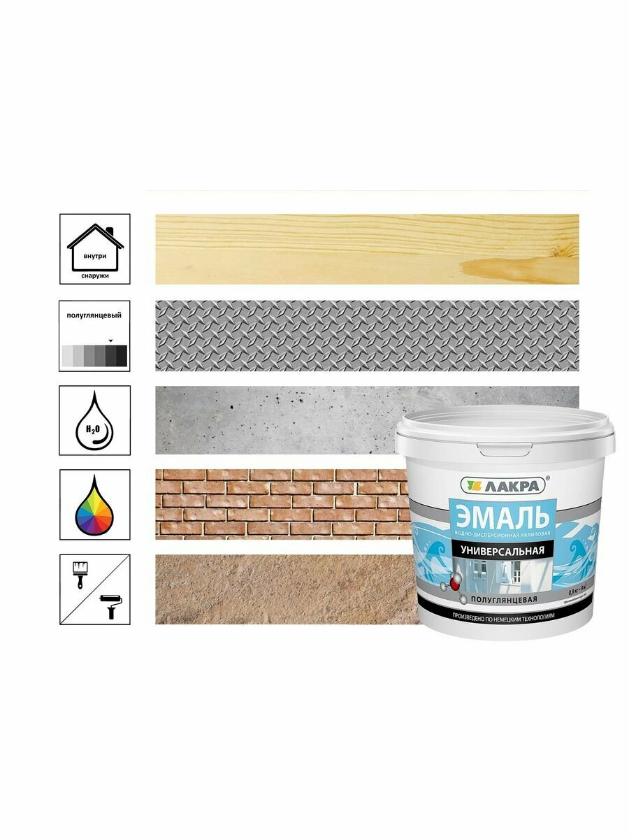 эмаль акриловая лакра универсальная полуглянцевая белая 2,4кг, арт.0008110