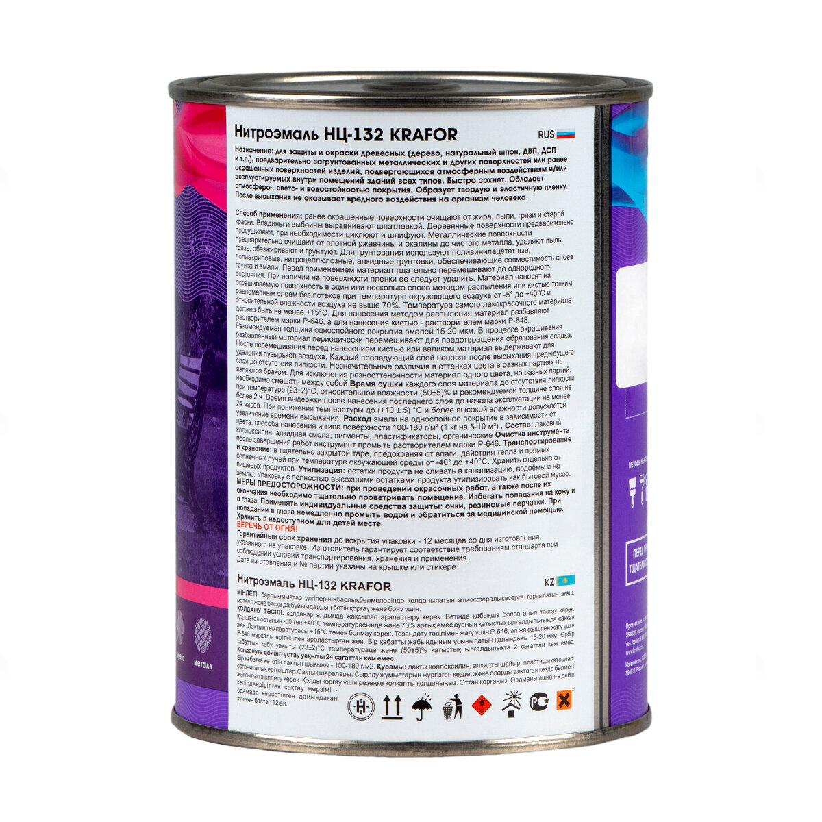 Нитроэмаль НЦ-132 быстросохнущая Krafor, глянцевая, 0,7 кг, черная информация:
