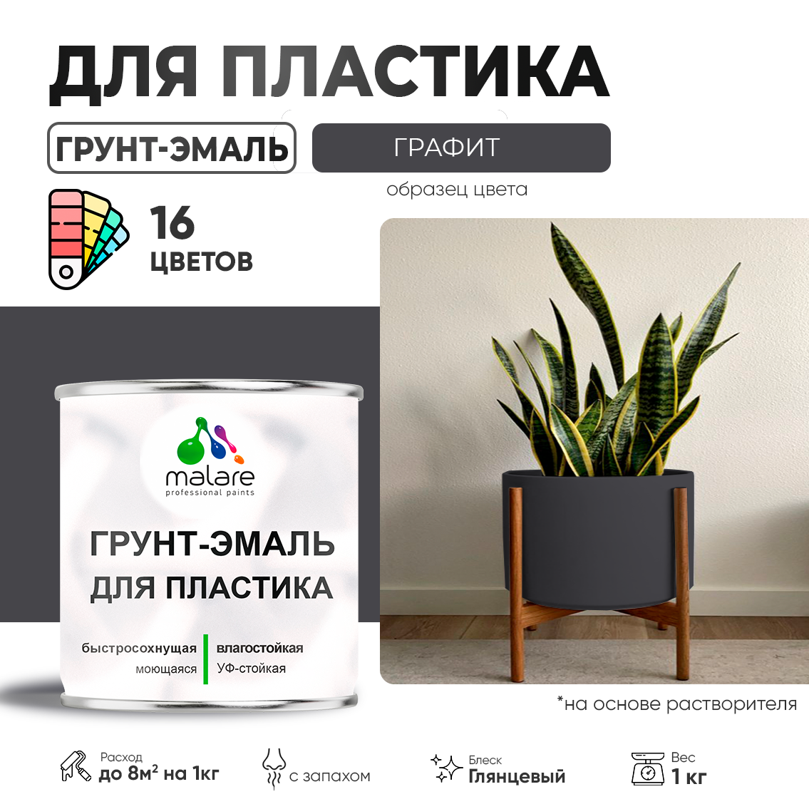 Грунт-Эмаль, Краска Malare 3 в 1 для пластика, окон и подоконников, сайдинга, быстросохнущая, глянцевый, графитово-серый (тёмный), 1 кг. информация: