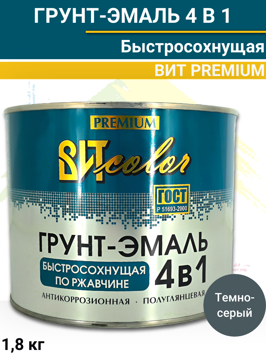 Грунт-эмаль по ржавчине ВИТColor быстросохнущая 1,8 кг, темно-серый информация: