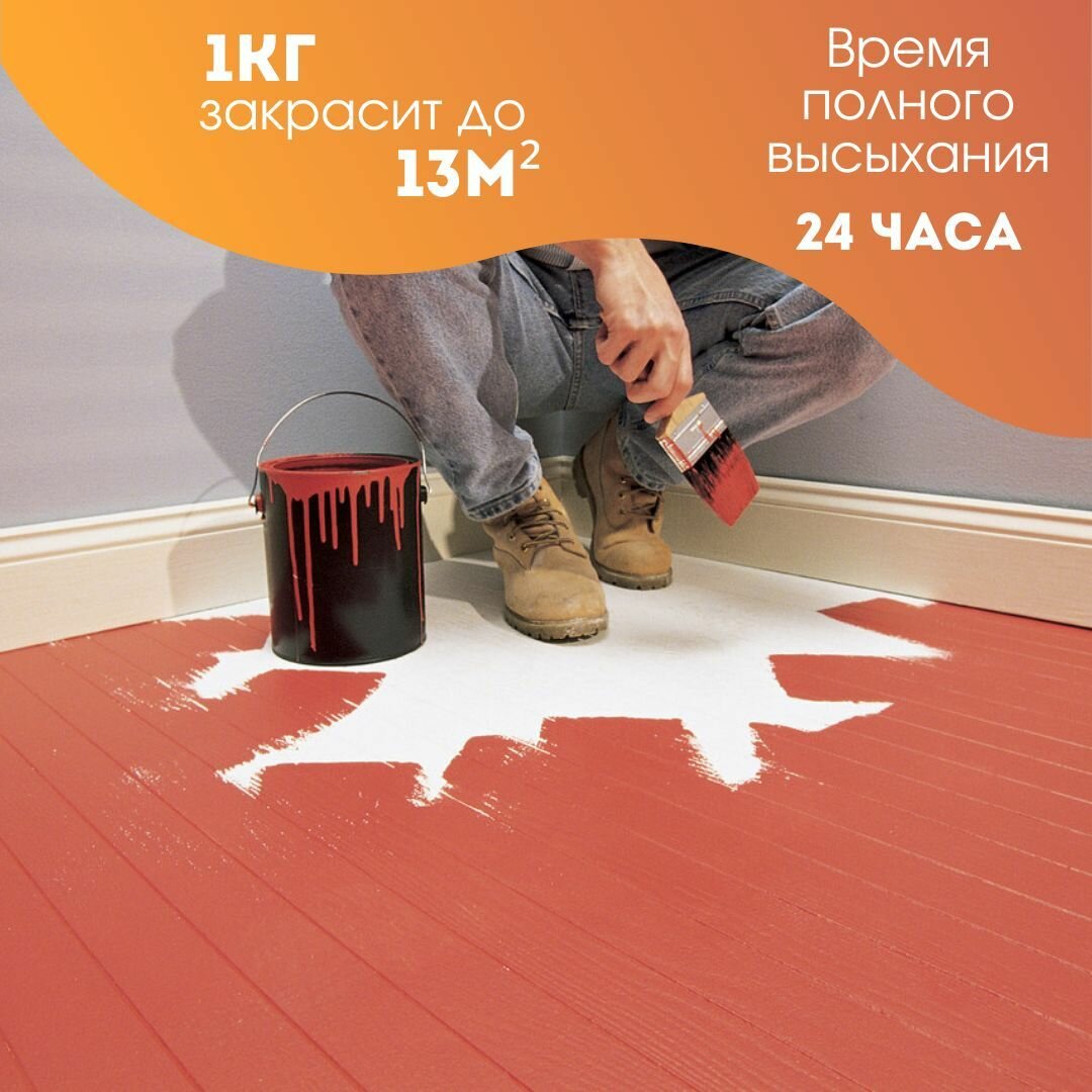 Эмаль акриловая для пола красно-коричневая Olecolor 1 кг, краска для деревянных и бетонных полов информация:
