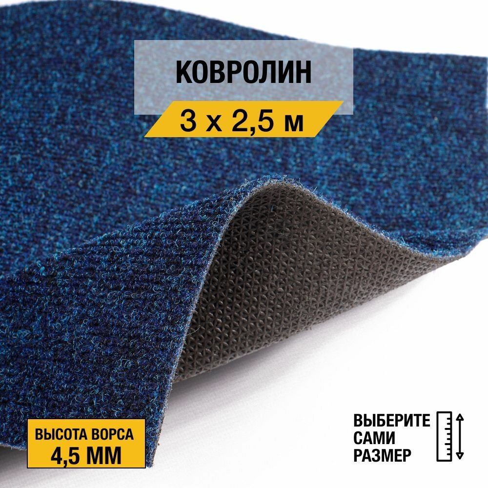 10 цен на Ковролин, напольное покрытие "Dessert 85" 3х2,5 м. Ковролин метражом "Betap", коллекция Dessert, иглопробивной, синего цвета с высотой ворса 4,5 мм.