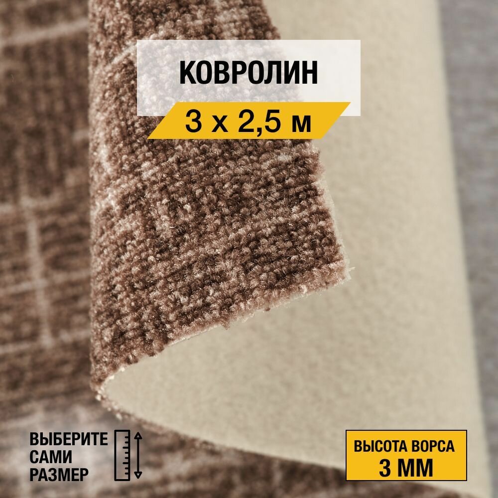 10 цен на Ковролин, напольное покрытие "Элиз 18 принт" 3х2,5 м. Ковролин метражом "Нева Тафт", коллекция Принт, петлевой, коричневого цвета с высотой ворса 3 мм.
