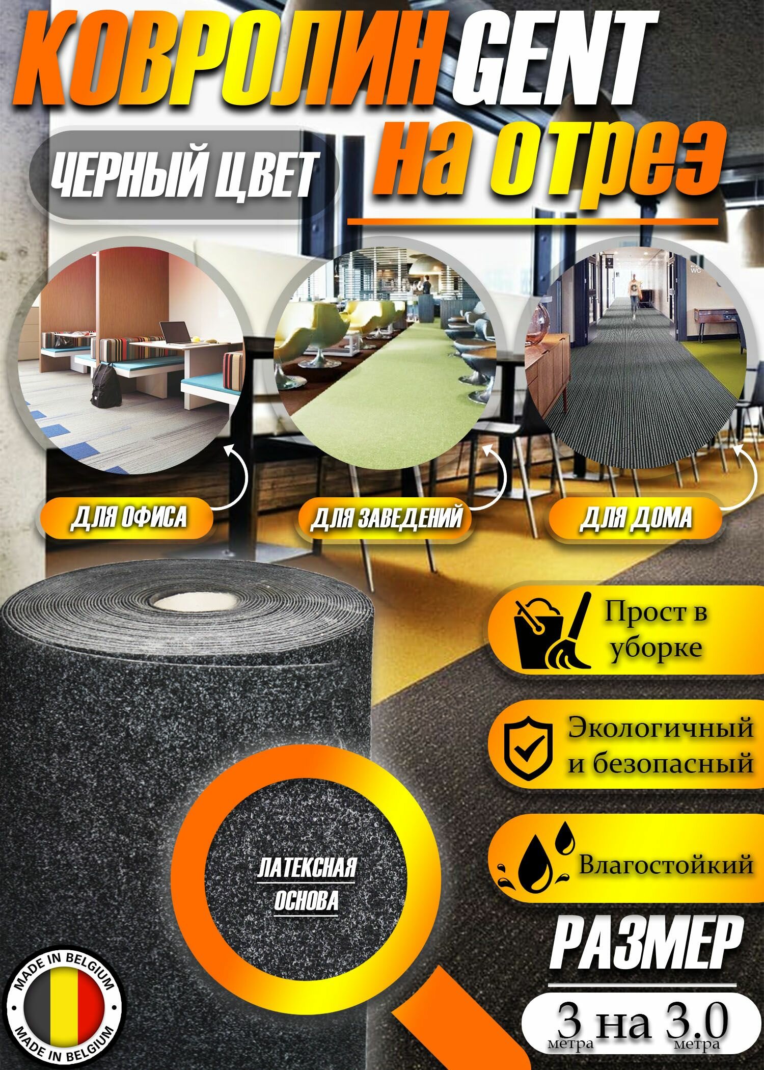 Ковролин офисный GENT на отрез 3на3м информация: