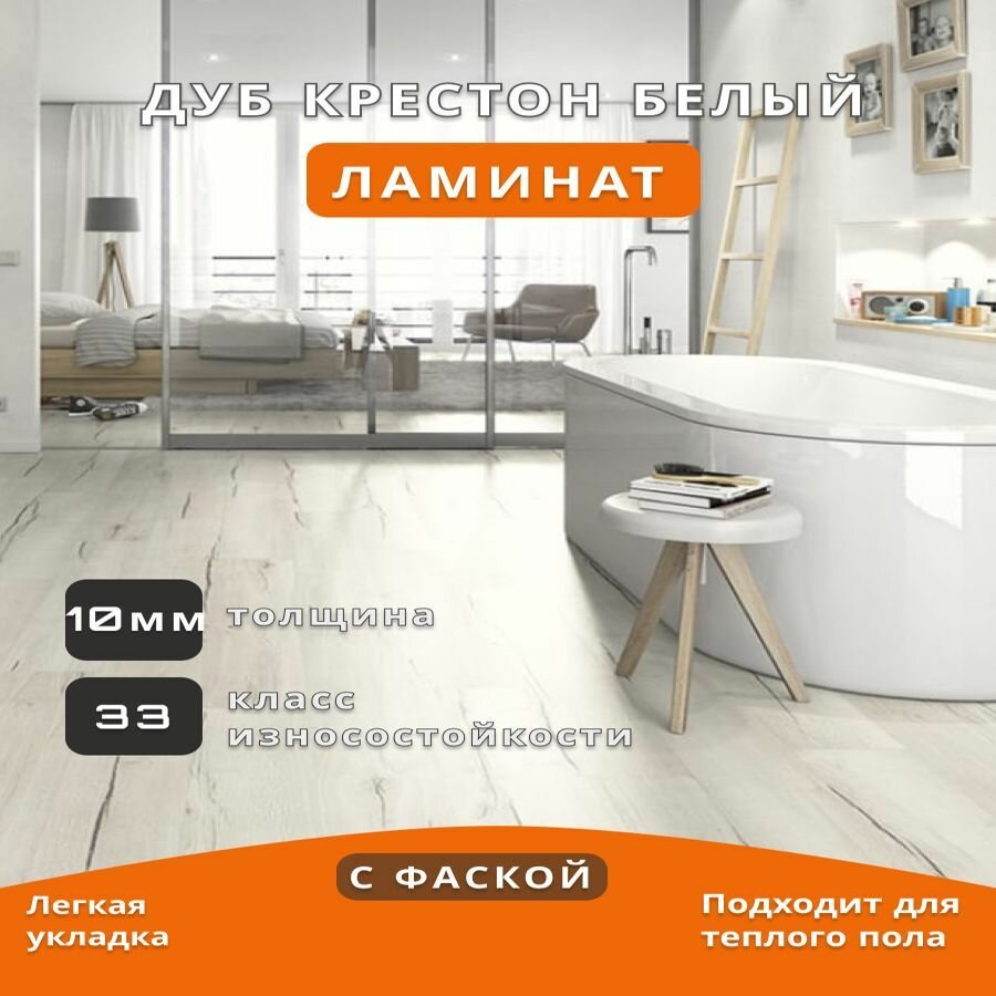Ламинат 33 класс Egger Home дуб крестон белый 1,74 кв.м 10 мм с фаской