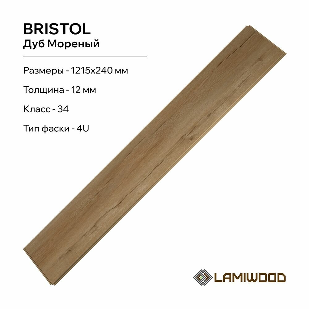 Ламинат Lamiwood Bristol 34 класс, 12 мм, 2411 Дуб Мореный информация: