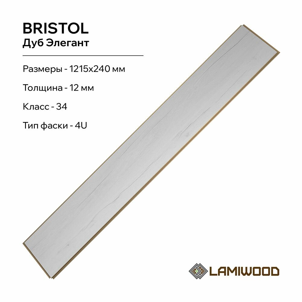 Ламинат Lamiwood Bristol 34 класс, 12 мм, 2415 Дуб Элегант информация: