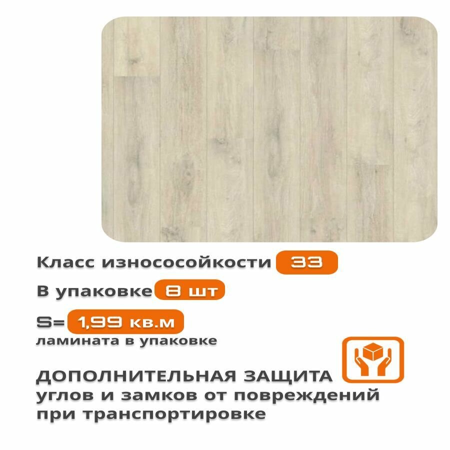 Ламинат Egger 8 mm 33 Classic Дуб Мелба Бежевый EPL189, 1292 х 193 мм, 8 шт/уп, 1,995 м2/уп.