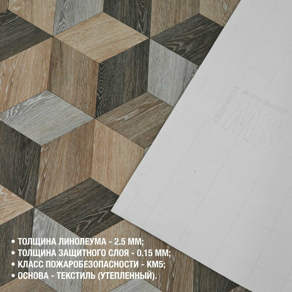 Линолеум напольный на отрез Комитекс, коллекции Парма, "MOJO 302". Бытовой линолеум 2,5х3 м. для пола в рулоне 21 класса 7 122 ₽