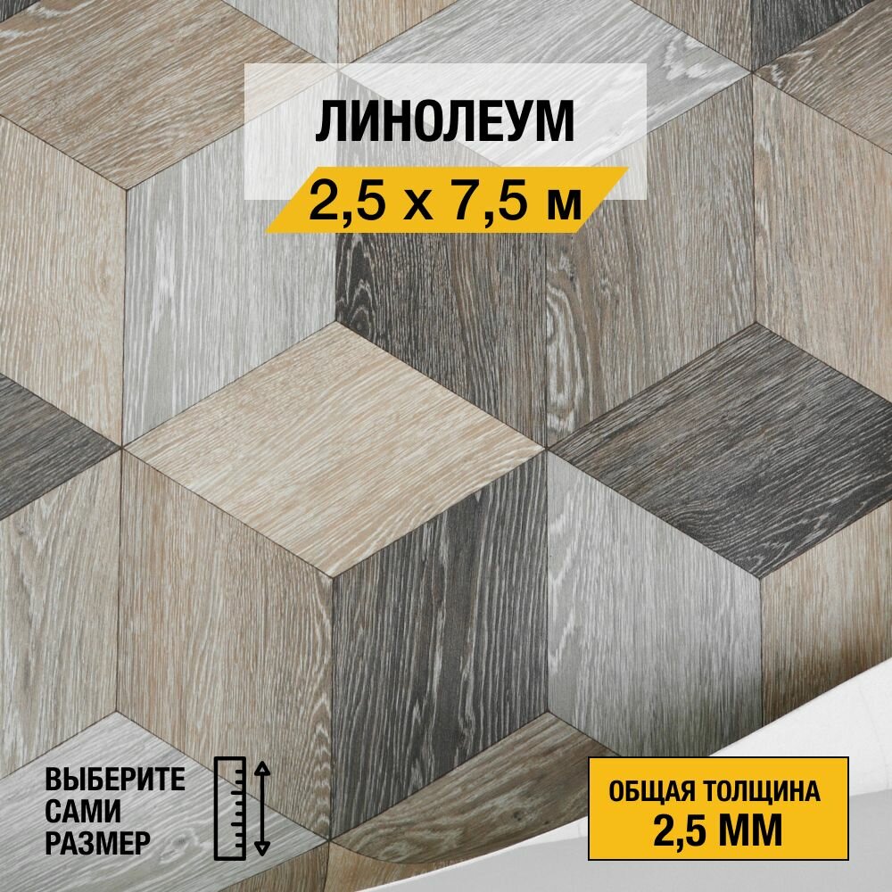 Линолеум напольный на отрез Комитекс, коллекции Парма, "MOJO 302". Бытовой линолеум 2,5х6,5 м. для пола в рулоне 21 класса 15 153 ₽