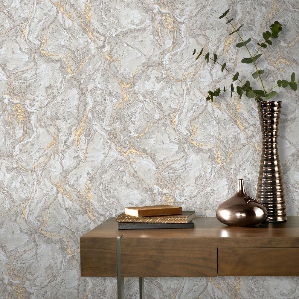 Обои антивандальные, винил горячего тиснение, моющиеся на флизелиновой основе Wall Up Siena 1.06м х 10.05м, мрамор, цвет серо-бежевый 2 590 ₽