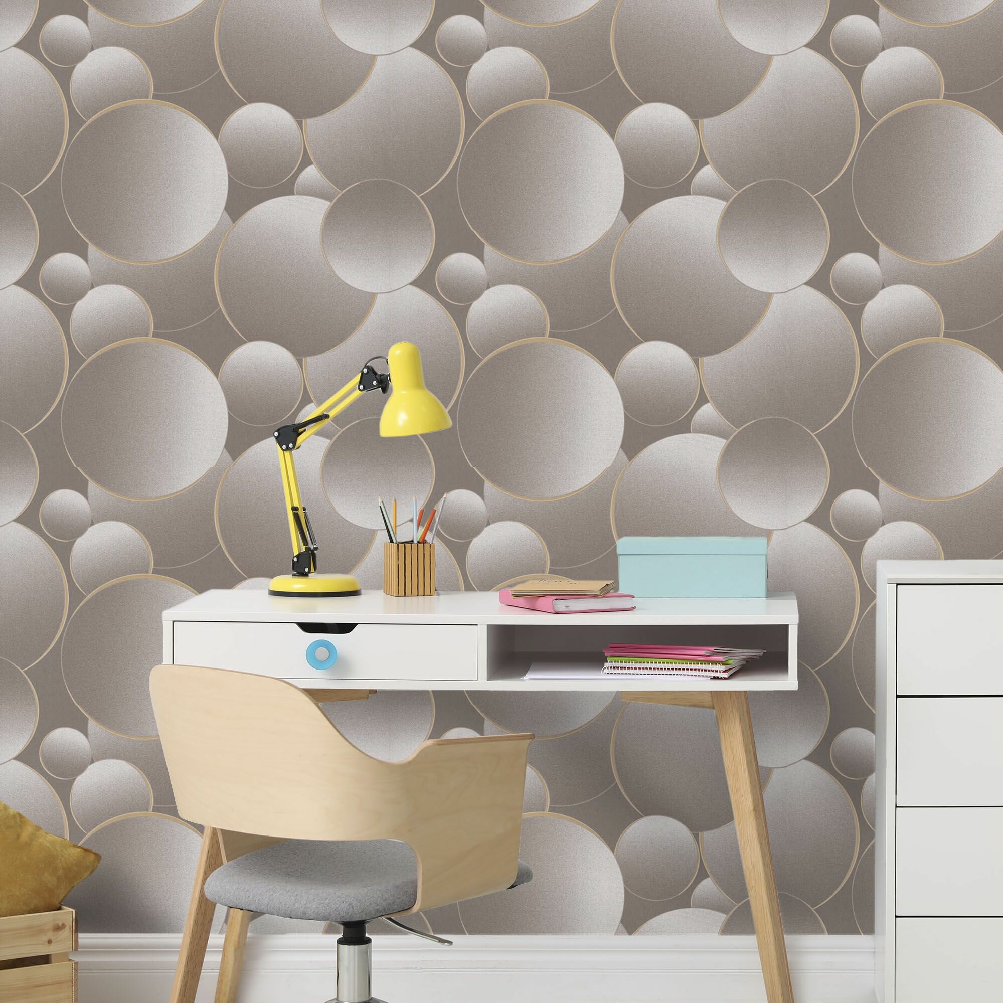 Обои флизелиновые, круги бежево-коричневые, метровые, для спальни, Баблс информация: