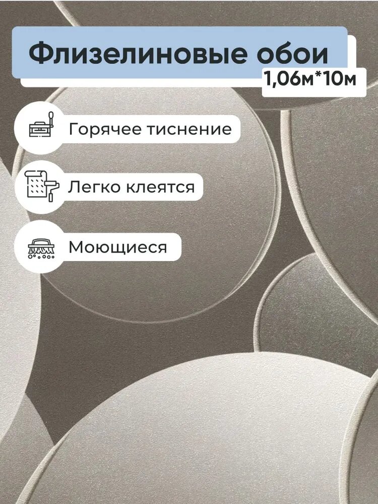 Обои виниловые на флизелиновой основе, метровые, горячее тиснение, моющиеся 1.06Х10.05м ERISMANN Юпитер, Круги, Геометрия, Планеты Для гостиной, Для спальни, Акцентные арт. 60548-05
