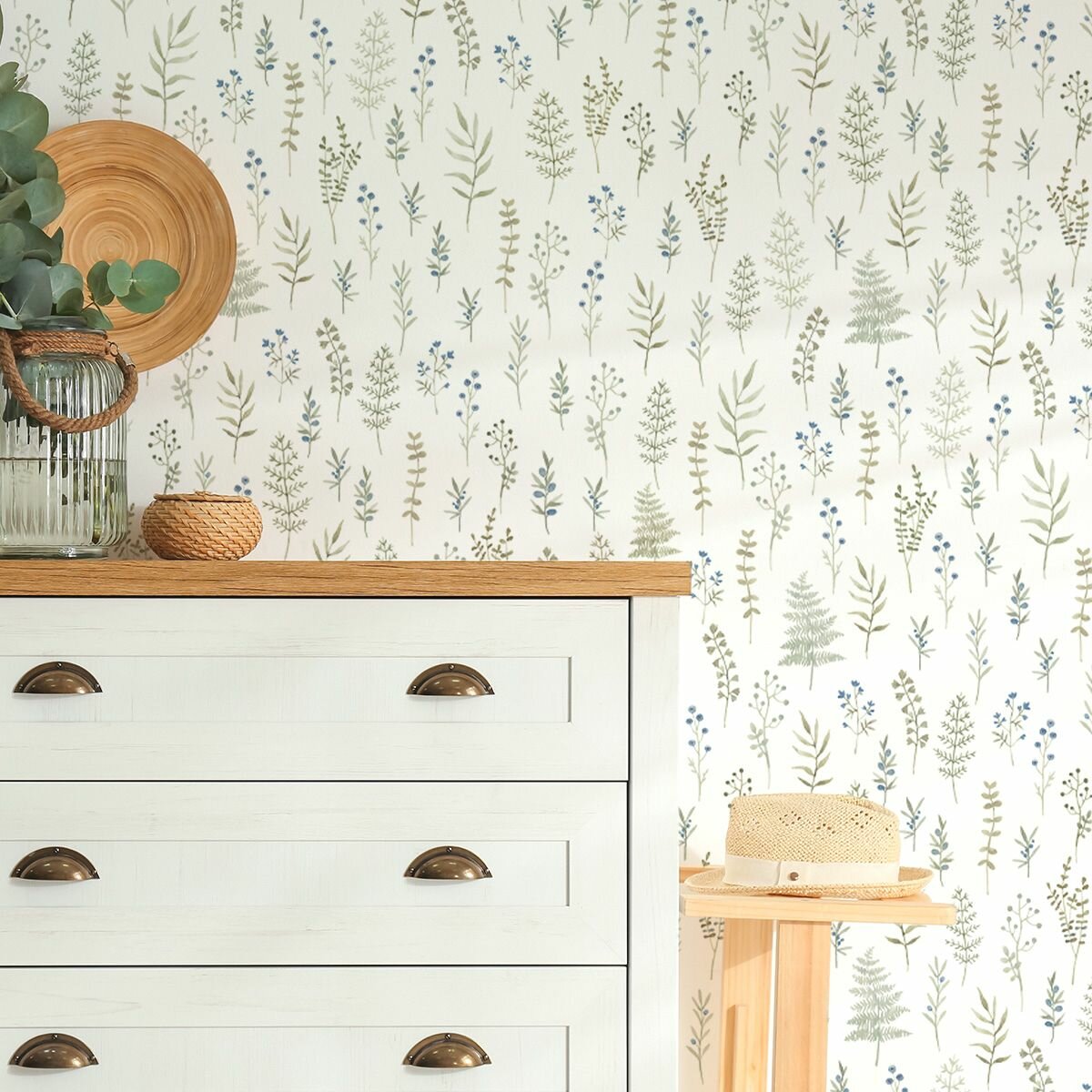 10 цен на Обои флизелиновые Provance (Moda Interio), прованс веточки сине-зеленые, для прихожей, метровые