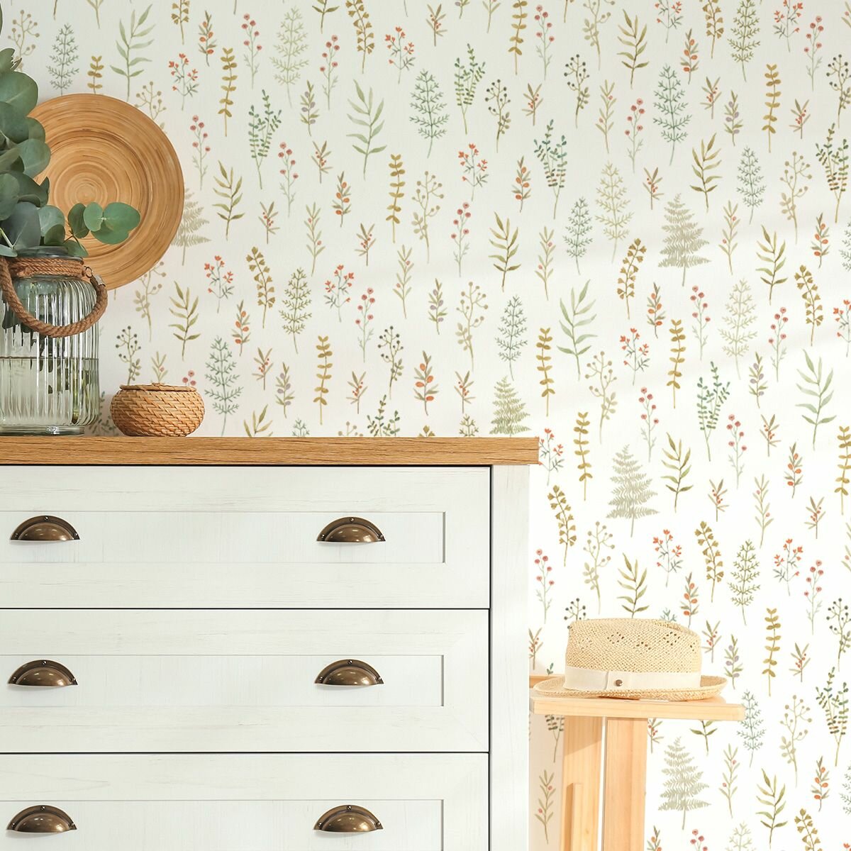 Обои флизелиновые виниловые Provance (Moda Interio), прованс веточки разноцветные, для гостиной, метровые 2 380 ₽
