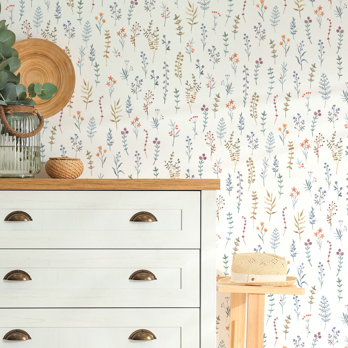 10 цен на Обои флизелиновые виниловые Provance (Moda Interio), прованс веточки разноцветные, для гостиной, метровые