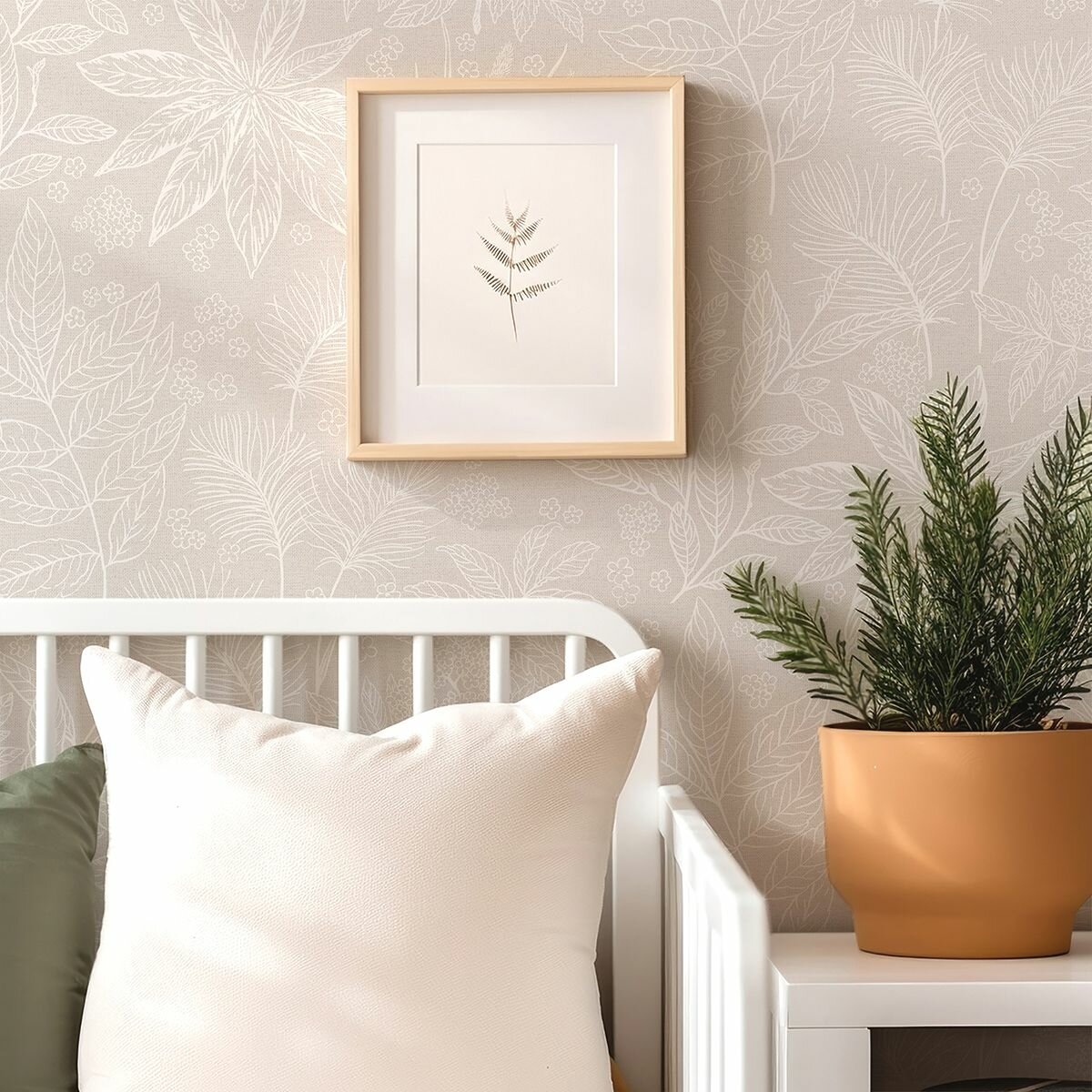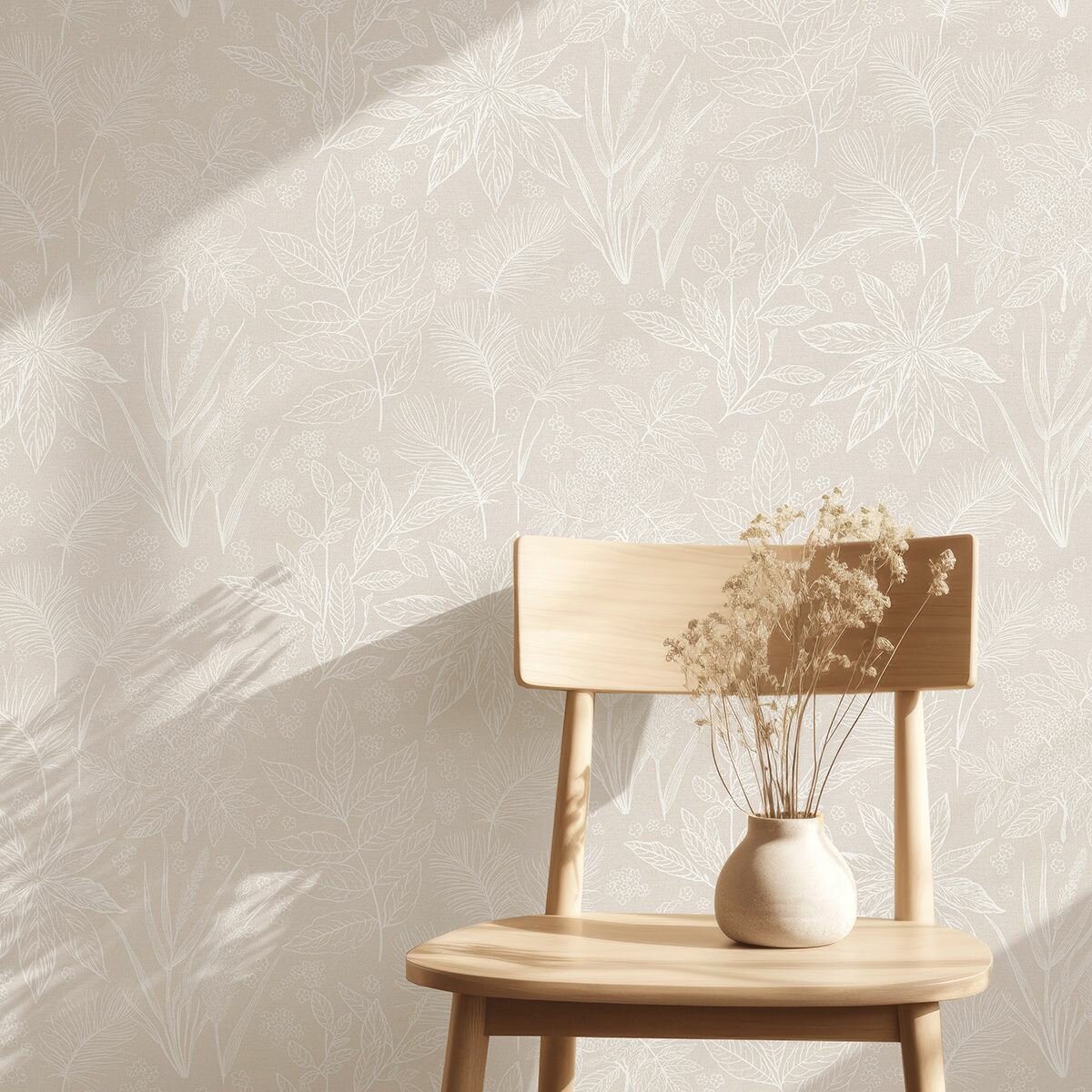 Обои флизелиновые, листья белые на бежевом, метровые, для гостиной, Botanicus информация: