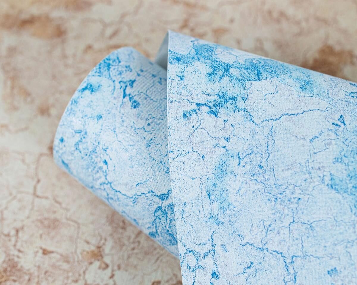Обои без ПВХ бумажные дуплекс без подбора рисунка под мрамор бетон штукатурка кракелюр голубые лофт 0,53х10м эко, Д813-01 610 ₽