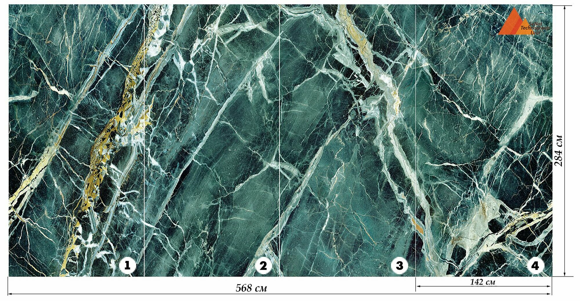 Гибкий Мрамор Малахит, лист 142х284 см, 4,033 кв.м. информация: